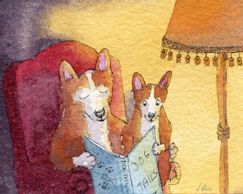 This is the first bit of the newsletter: see pic below - these corgis are celebrating the new management, as are all right thinking dogs.There's been a change in management here at newsletter HQ - I, your humble PupperJack, have taken over. Susan has been too busy writing, painting and fretting about delayed parcel shipments (not to mention computer meltdowns) to keep the newsletter to the monthly schedule we all dream of. Tut tut.