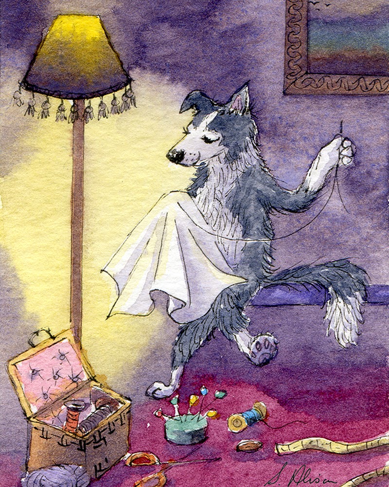 Border Collie handy with a sewing needle (unlike me - give me needle and thread and I'm in knots in no time)