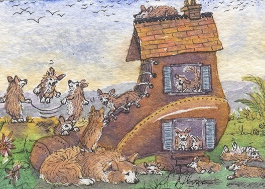 There was an old Corgi who lived in a shoe. She had a lot of puppies...