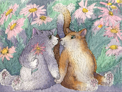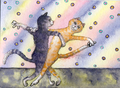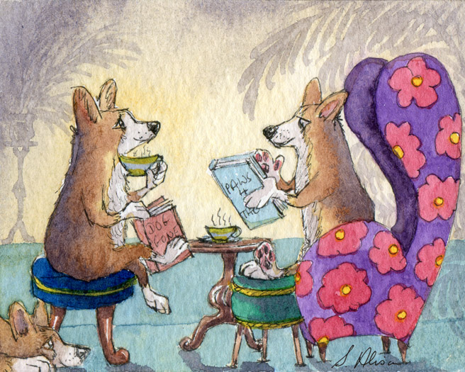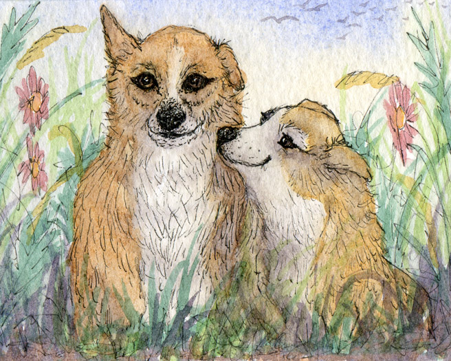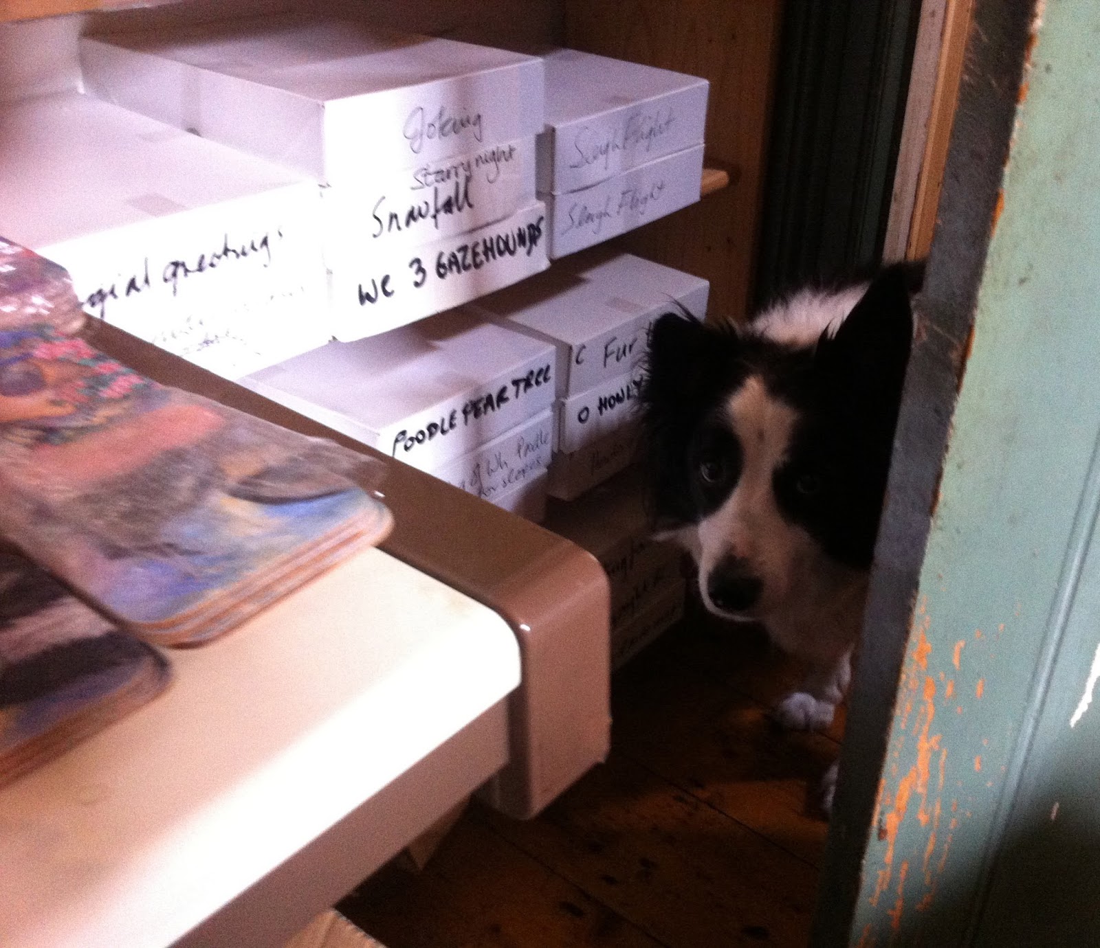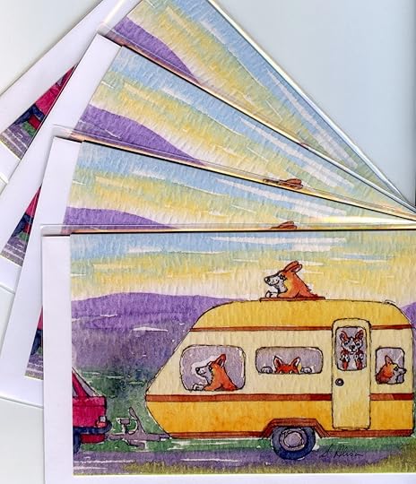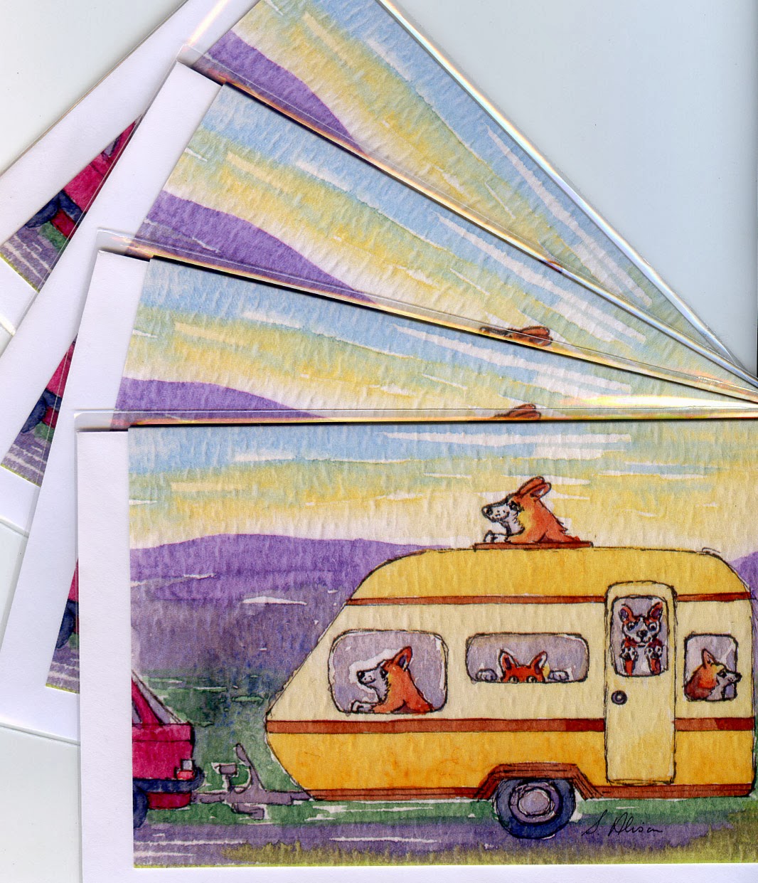 Some of my new cards - from a watercolor painting titled: They were off on their holidays (and woofing from the back: "Are we nearly there yet, Dad???")