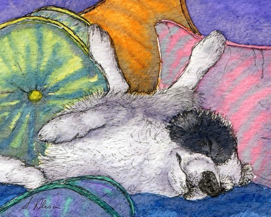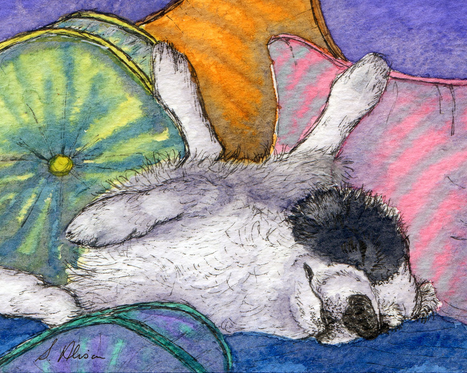 This Border Collie dog was practising her favorite sport of extreme relaxation. (She was very good at it.)
