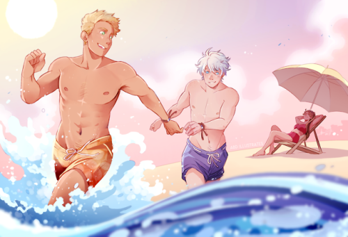 Earlier this month I was commissioned to draw the protagonists from the LGBT book series “Seasons Rising” having some fun in the sun! It was a lovely project to work on, and also made for a nice opportunity to talk you guys through some of the process that goes into a digital painting! :D