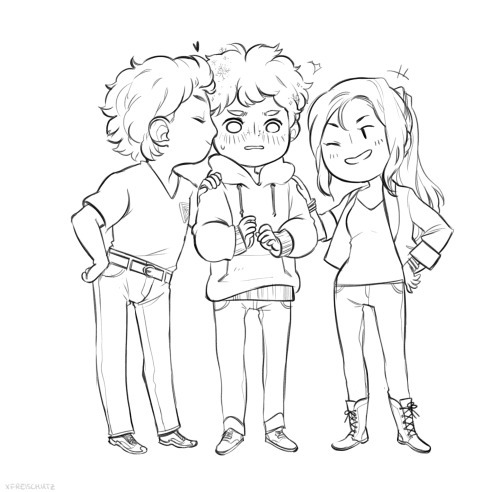 I commissioned this absolutely adorable drawing of Tyler, Fay, and Sam from @xfreischutz! I love how it came out so much :D