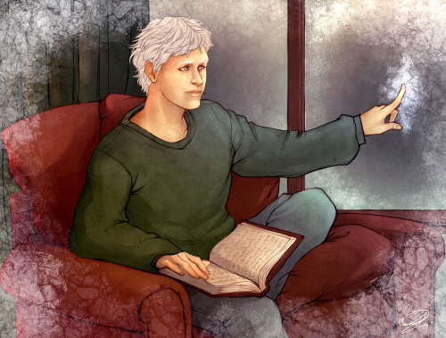 bout time i drew this white-haired dork again, this time with a flower crown of anemone and lavender!