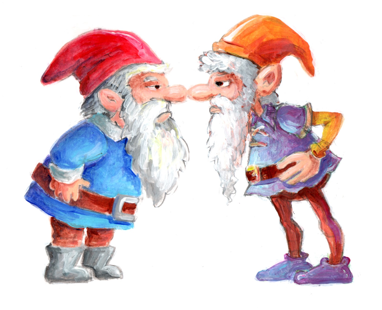 How long are gnomes' legs? WE ARE A HOUSE DIVIDED!*It all started when I did the painting of the gnome for my son. When I started to sketch it, I drew the gnome with long legs. My wife, horrified, asked me to make them short legs, so I complied (even though I knew it to be COMPLETELY WRONG. Objectively speaking, of course).Later, as I was driving with my daughter, I mentioned that her mom erroneously asked me to draw a short-legged gnome. My daughter did not take my side. In fact, as soon as we got home, she ran into the house, hugged my wife, and cried, "Mom, you're right about everything! I'm sorry I ever doubted you!" I wish I were making that up.Undaunted in my certainty, I decided to take this question to the internet. So I leave it up to you - do gnomes have long or short legs?