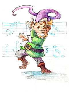 My son is going to play Liszt's "Gnomenreigen" at a piano competition this weekend. To get him into the feel of little gnomes dancing, my wife asked me if I could make a quick sketch of one to give him the idea. He liked it!