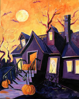 My painting students asked if I ever did anything creative, since I teach them still lifes. I told them I prefer it, and said we should do one next week. They all shuddered in horror at the thought of doing something creative with paint. So I decided to compromise. This is my house, but not my house. They have to bring pictures of their own house, and get all Halloween with it. They have a model, so it shouldn't be too overwhelmingly creative... or at least that's what I'll tell them (I feel like I should cackle gleefully).