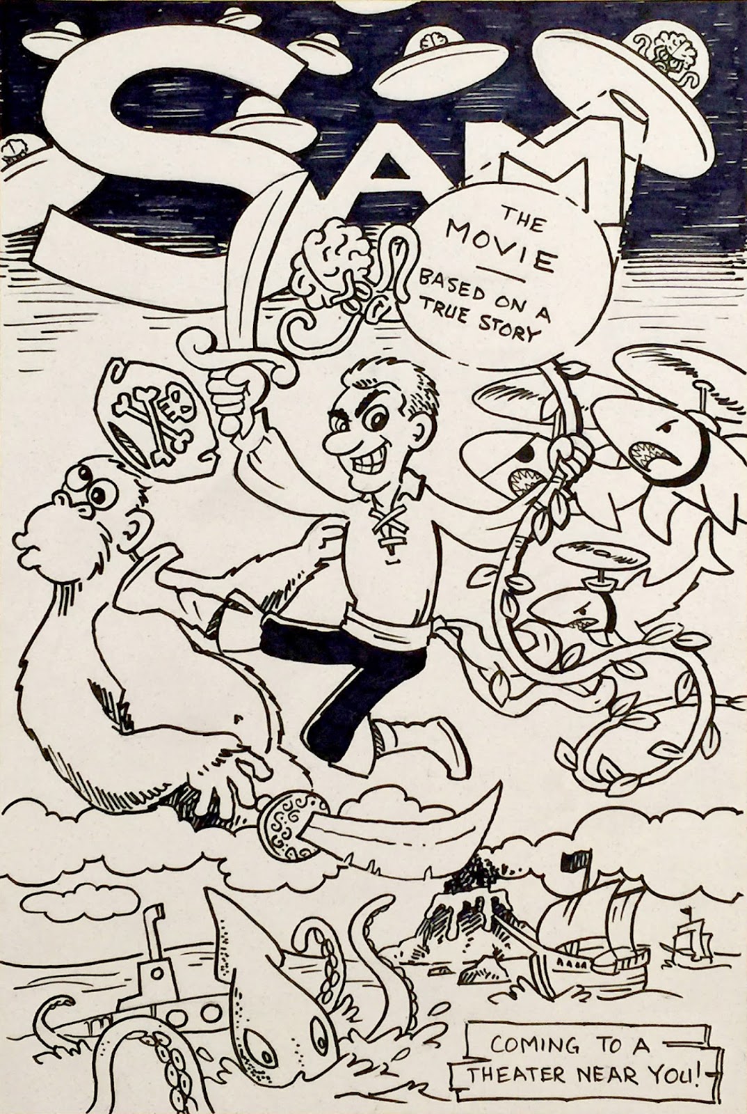 For the last art class before summer, I decided to let them make their own summer blockbuster poster - about themselves! And, of course, I had to do a sketch to show them what it could look like. And I got to get in a dig at the phrase "Based on a true story" that movies use. So all of this is sooooo true. Really.