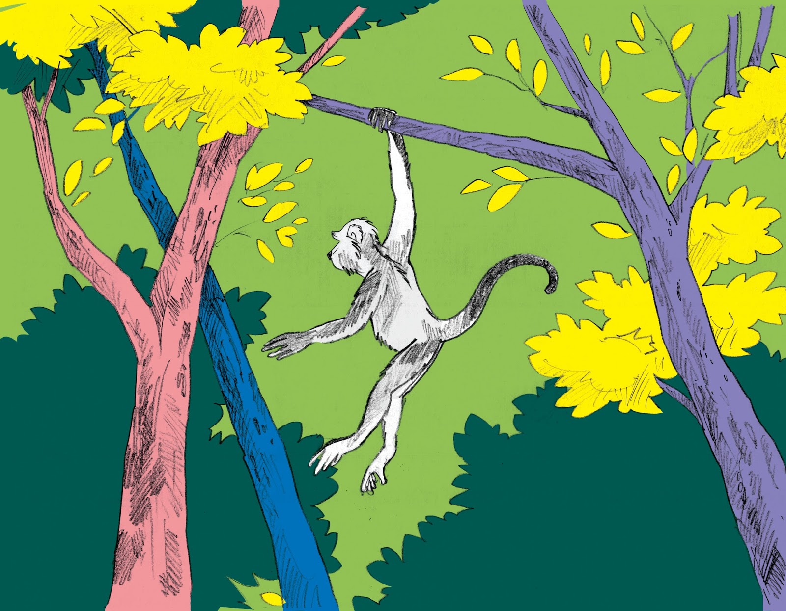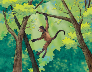Here's another one from the Malawi schoolbook "How Animals Move." The way I did these is that I did a tight pencil drawing, scanned it in, and cleaned it up. Then, so I'd have something to work with, I added flat color behind it: