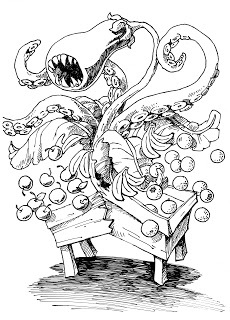 My art class had been taking on some challenging assignments, so, to give them a break (as well as it being October) I had them draw monsters. I said they could make their creatures out of whatever they didn't like, or were scared of. For me, there is only one true monster - the villainous eggplant. Begone, chthonic evil!