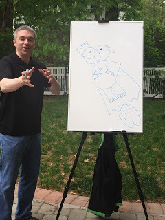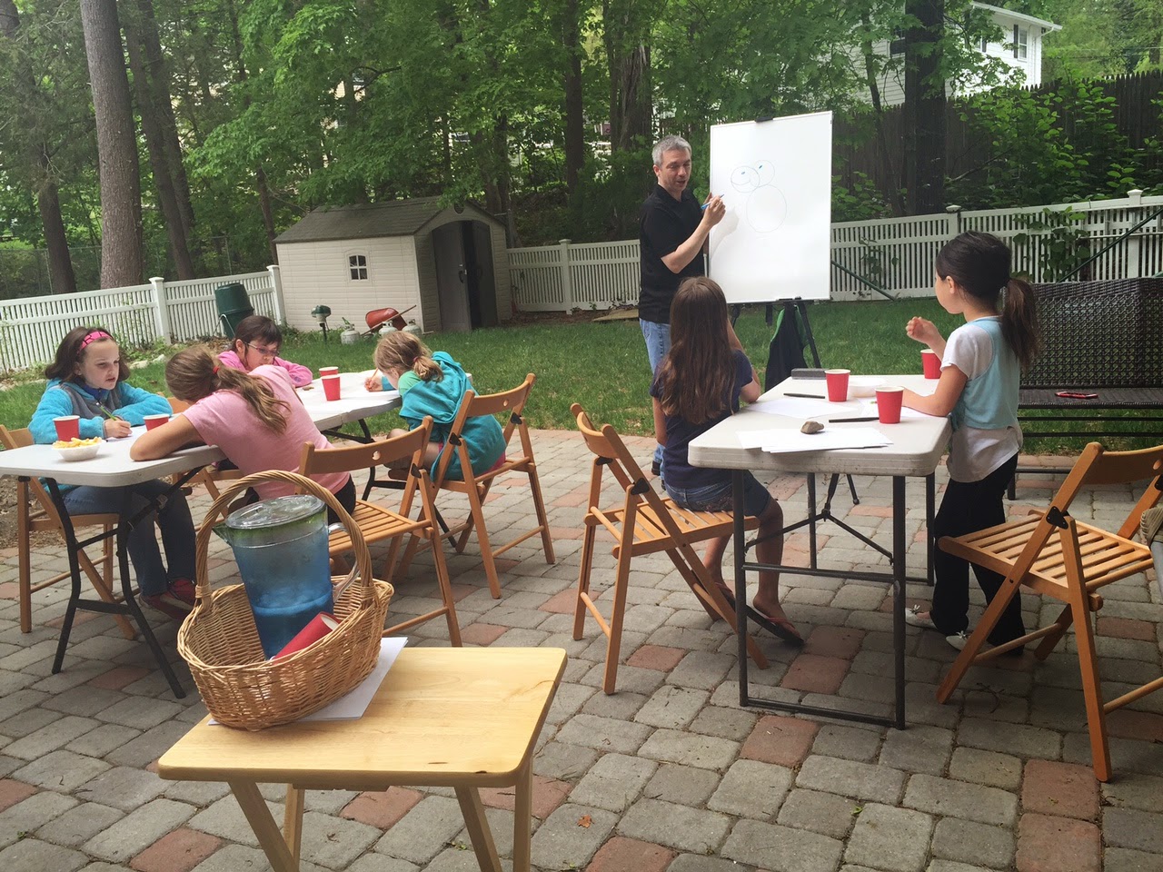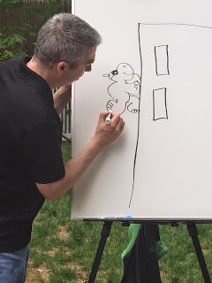 One of her fellow second-graders was very excited about getting to do cartooning, and convinced her mother to bid on it and win. She got to invite friends with her as well, and, since it was such a nice day, we got to hold the class outdoors: