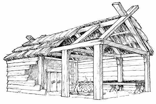 about the sources Tolkien used to create The Hobbit and The Lord of the Rings.This is a cutaway section of a meadhall, where feasting and drinking would take place, all with a big fire pit raging in the center of the floor. With wooden walls. And a thatched roof. You know, when I put it that way, that may be the reason why people need to draw what they used to look like, instead of taking a picture of any existing ones.