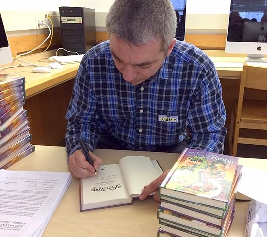 Got to talk about The Silver Rings at the Bates Elementary School today. They were great kids! They asked a lot of really insightful questions - in fact, it made the talk go better because they would often anticipate some of the topics I wanted to talk about. Also got to give them a drawing demonstration, which was a lot of fun for them (and me)!