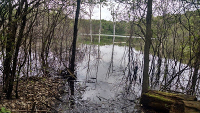 In 2018, it began raining. An inch of rain one day, two inches another day, and even more than that on some days in late summer. The pond began inching higher. The snow was deep during the winter of 2018-2019, and more rains fell in the spring. The ponds rose rapidly. Birch trees stood in four feet of water, all dead. Once more we canoed on what are now small lakes.