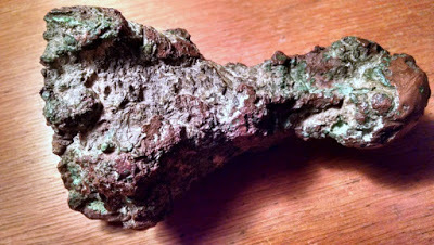 We wondered how it had gotten into our potato field. The professor offered two theories. It could have come with the glacier, or an Indian had lost it. I still have it. The hunk of copper is pictured above.