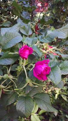 The old rose stands nearly six feet tall. Different from many of the more fancy roses, my old rose bush has made it through the coldest of winters with seldom a dead branch, and without even any “dying back,” which is common with many rose varieties.