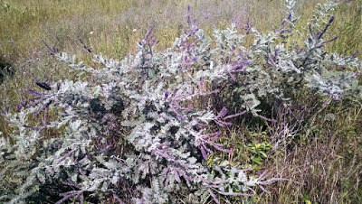 A rather strange looking plant grows near the northwest corner of my prairie. It is too big for a wildflower, and too little to be a shrub. So I did a little research and discovered that it is a leadplant. Scientific name: Amorpha canescens.