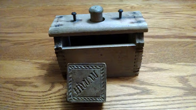 Some farmers continued to churn butter in their homes well into the early 1900s—my grandfather was one of them. Grandpa Witt used this little wooden box along with the design block to prepare butter for sale. This was before milk trucks began making the rounds picking up milk from farmers for the cheese factories.
