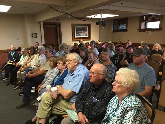I spoke to a group of writers and writing instructors on Friday evening. The event offered a variety of writing workshops from Friday through Sunday, August 4th to 6th. On Saturday, at an event open to the public, I spoke at the Rhinelander District Library—see photo—about my new books: Old Farm Country Cookbook and Never Curse the Rain.