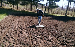 Photo: Steve marking the garden rows with a marker my father made some fifty years ago.