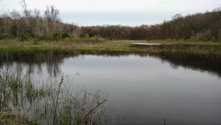 But sitting by my pond the only sound I hear is the breeze rustling the tops of the oaks and maples still bare of leaves, and the subtle sound of the wind riffling the surface of the pond.