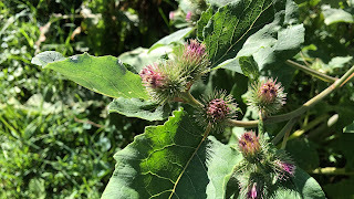 When is a weed more than a weed? Yesterday, on my daily walk, I saw a huge burdock plant growing alongside the trail. Oh, how my father despised burdocks. He placed that tall, miserable weed, as he called it, right up there with bull thistles, which he hated with a passion.