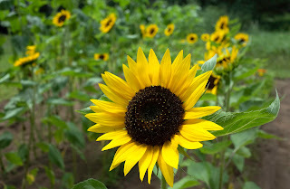 For the past several years, the flower of choice at Roshara’s garden has been sunflowers. I like them, my son, Steve and daughter-in-law, Natasha, the primary garden operators these days like them as well. They require little care—some hoeing to keep away the weeds when the sunflowers are little.