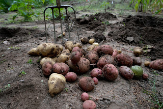 It’s potato harvesting time. Since 1967, when we began vegetable gardening at Roshara, potatoes have remained one of our main crops. Maybe it’s because the words of my father remain in my head—a meal is not complete unless it includes potatoes. Thus, as a kid, I remember fried potatoes for breakfast, boiled potatoes for dinner, and boiled potatoes for supper, at least six days of the week. We often had pancakes for breakfast on Sunday, as a special treat, but back to potatoes for dinner and supper. Another treat was baked potatoes, which we had when relatives came for dinner or supper, and especially if it was a holiday such as Thanksgiving or Christmas.