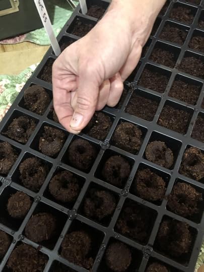 We germinate the seeds in a germination flat. As soon as the little plants come up, I put the flat under a grow light where they remain for several weeks. We then transplant them into little fiber pots and keep them outside where they “toughen in” before we plant them in our farm garden. We transplant the fiber pots directly into the garden soil.