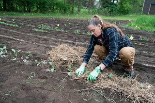 Natasha mulching garden plants. Photo by Steve Apps