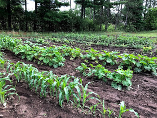 and our chief veggie gardener rated the vegetables as of the Fourth of July as follows. No vegetable received a 10. Sweet corn and potatoes--9. Cucumbers, radishes, zucchini, and winter squash--8. Pumpkins, tomatoes, gourds, and sunflowers--7. No vegetables for 6. Beans--5. Carrots--4. None for 3. Lettuce--2. Green cabbage--1. red cabbage, kohlrabi, kale, and spinach (rabbit food)--0. Zero for onions as well, as the onion sets didn’t grow.THE OLD TIMER SAYS: Every garden year has its ups and downs.
