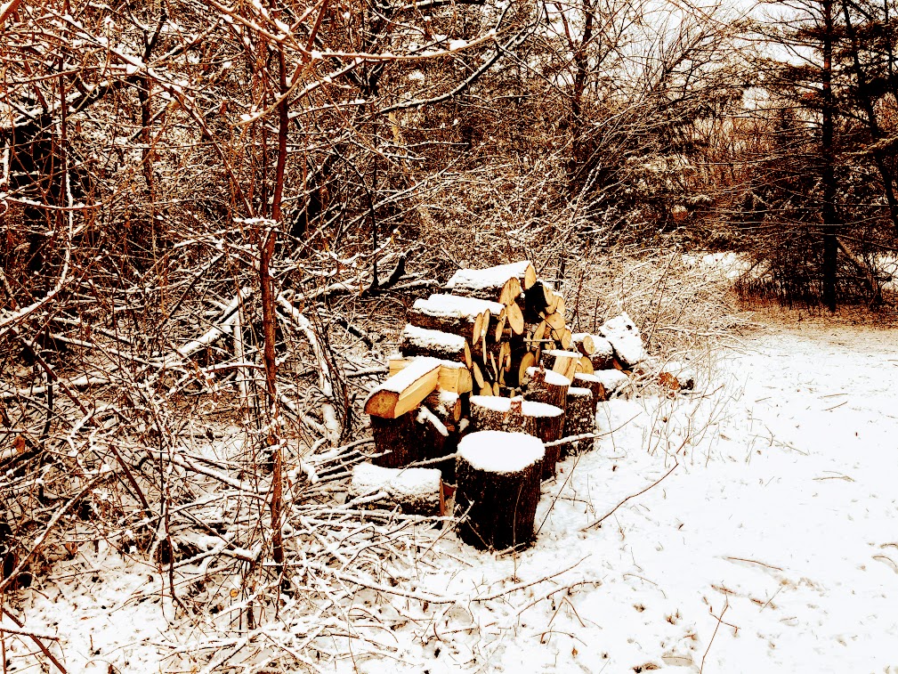 With our trusty team and bobsled, assuming snow on the ground, we hauled the cut branches and logs to a huge pile near our house, waiting for the day when we had a wood sawing bee where the neighbors helped us cut the logs into blocks.