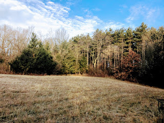 I am sitting at the edge of a little field, where just a week ago I spotted a big deer leaping across where I am sitting. Couldn’t tell if it was a buck. Coming out of the pine plantation to the north and following a deer trail. Would I see a repeat? I am ready.