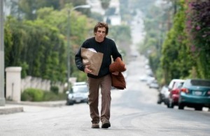 I am still working my way through Roger Ebert's Best of 2010 list. This weekend I got to Noah Baumbach's unprepossessing Greenberg, which is technically on Ebert's Second Ten Best List…. The movie got little attention when it came out, and one can see how hard it would be to market. Ben Stiller cranky and unlikeable? No plot to speak of? No female name-brand star? The film trudges uphill as perversely as Roger Greenberg in this film still: he is a man in L.A. who can no longer drive a car. Yet the film is good: well written, very well performed. with its own quiet charm. Baumbach was not nearly as understated in his first success, The Squid and the Whale, as he is here, where nothing gets "explained" or "worked out." The main characters–Greenberg, his brother's personal assistant, and his college buddy–struggle through complicated, enmeshed relationships with credible awkwardness and grace. Their actors–Stiller, Greta Gerwig, and Rhys Ifans, respectively–deliver subtle, complex performances. Stiller is an especial surprise since we think we know him already. Here he is physically changed, his whole body slumped, his manic energy mostly tamed. He holds on to just enough charm to make you believe that these people put up with him.