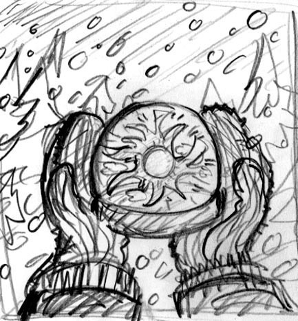I made three initial rough sketches and sent them to Chelsea. She picked the bottom left, from which I made more fefinied sketch (which is still rather loose).