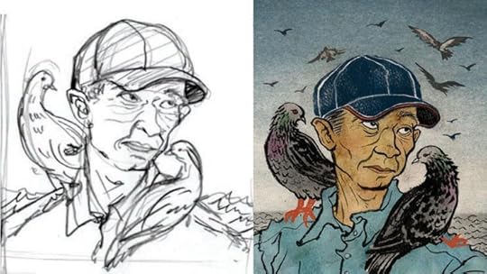 I cannot thank my studio-neighbor Jungyeon Roh enough. I finished the drawing on Friday, then I had to take off to speak at Illustration Conference ICON7 in Rhode Island. While I was traveling, she helped me as coloring assistant. This was what I asked Jungyeon to do. fill in the basic colors, so I can tweak and fix when I came back on Monday morning.