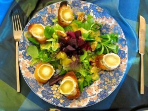 followed by a delicious warm cheese salad (à la française, bien sur) by Suzanne …