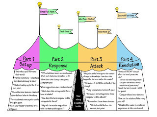 Be sure to click on the blog to read the details. This "beat sheet" from from StoryFix.com helps, as well. The terms are slightly different from those that Sokoloff and others use, but the concept is the same.