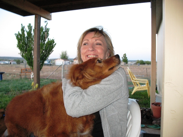 DeboXena enjoys tormenting Debo, the cat. They have stare downs which Xena usually wins. I'm pretty certain she could annihilate poor Debo, but never makes a move on him until Debo moves. Then Xena performs the expected chase. She'd love to have a rough and tumble wrestling match with him, but Debo would come out on the bad end of that. Xena really wouldn't hurt a fly but is more powerful than she knows.