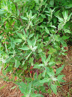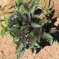 Aztec SpinachI'd never heard of Red Aztec Spinach. The plant is pretty and will be bright red when fall comes. The stems have to be avoided as they are tough and bitter. The leaves are small so it's a bit of a pain to clean them off. They taste 'green' and good, but there are other greens with larger leaves I'd just as soon bring to the table. The exciting thing about this plant is it could get nearly as tall as me. And once it starts to send up flowers, the unopened buds can be cooked like broccoli. It's an all season veggie.