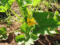 SquashOur garden is a microcosm of life in the same time period. We've had births, deaths and yesterday I got to experience what I would call a wedding. Or maybe the wedding night. A bee dipped into one flower and dispersed his bounty in another. The pollen is the wedding ring? At any rate, in the end we'll have butternut squash to show for the ceremony.I've been the messenger of death lately - or actually the hand of death. Waging war against weeds is an endless effort, and today I got serious. I took the weed eater to the garden. The heck with hand-pulling in this heat. The weeds are taking over, and I couldn't let that happen. I sliced them off at the ankle. And if they reappear, I can now deal with them a few at a time.