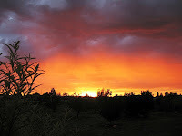 We're going to have to do battle over the thermostat. Four people punching in the temp their comfortable with may be part of the problem. We've been pretty careful about the times we run the dishwasher and do laundry, so I'm fairly certain the air conditioner is the nasty culprit. We've had more days than expected over ninety degrees. And after a hot day in the garden, a cool house feels too good.The really good thing about the prairie is the way it always cools down once the sun sinks low. Last night we sat on the patio, as we do many nights, watched the sunset and enjoyed the fresh, cool air. We romped in the yard with the dogs and didn't break a sweat. Makes the end of the day a wonderful place to be.