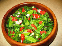 Red ChardI'd never even tried chard. Okay, I admit, I'd never heard of it. Maybe I've seen it at the store, and I didn't pay attention. What a great addition to a salad. I'm particularly fond of the red and the yellow. I have no idea if they taste any better than the white, but the color alone is worth having it in a salad.Here's the basic rice recipe for Aztec Spinach. I've added chicken to it as well as made other changes. I'm not one to stick to a recipe. I don't even like to cook!