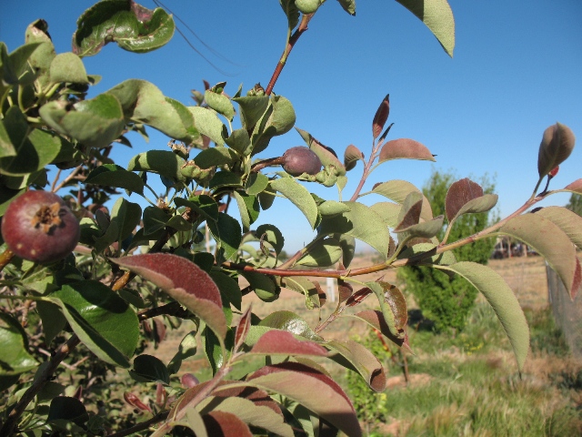 See the pears?Farming is not for the faint of heart or weak of limb. Although, Lance is the lead in the vegetable garden and does ninety percent of the work, the other ten percent leaves me exhausted at times. My main pursuit is to eliminate the weeds. If you are at all familiar with fertile prairie, you're laughing at me. The big problem is we let them get ahead of us. But then I think they multiply while we sleep. We're going organic so manual labor is the about the only way to take care of the monsters. And if I don't get out of the vegetable garden soon and into the blackberry garden, we won't be able to see the blackberries to pick them! This is the weak of limb part.