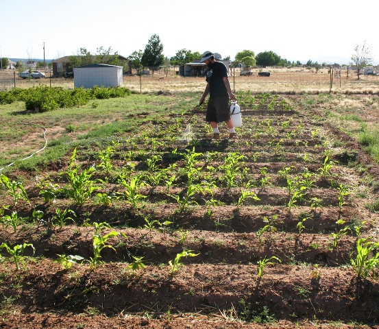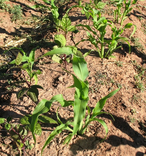 Lance waging war on the Blister BeetlesThe frost damage did not have a happy ending, although the blackberries are sending up more flowers so we should get some berries this year. We saved a few of the spinach and broccoli plants. The windbreaks have taken the stress off the peppers and tomatoes. And thank goodness Lance stumbled on the Blister Beetle hatch. If he hadn't, we probably would've lost all our corn and beans. Happy ending. It isn't over and he's going to have to patrol the fields often, but at least we know about them.We may still have corn knee-high by the 4th of July!