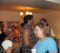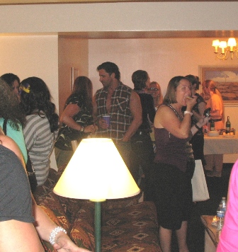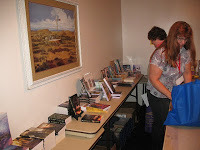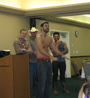 So back to the shirtless cutie! We (my sister went with me to the conference) met him on Friday night at the wine reception. If the air conditioner had not broken down, I might have thought all the ladies at the reception were getting a little overly heated from the three male models working the crowd. Shirtless cutie told us he was there because his mama had convinced him to enter the contest. Boy did he know how to work a room full of women. As the weekend wore on and we saw his stuff, it was pretty evident the kid's a pro. But he was very clever and funny and ended up the winner.