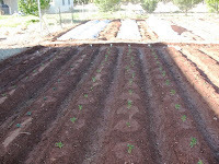 Rows of carrotsThe main objective of our garden this year is experimental but at the same time to feed us. What are we good at growing and what is good to grow here? Eventually, we could take part in some farmer's markets or supply a couple of organic restaurants. That's the goal of head farmer, Lance. I'm hoping there's a financial silver lining.