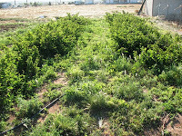 Blackberry patch todayThe blackberry bushes are flourishing but the weeds outstripped them. Between weeding the garden and the time spent at conferences and writing, I'd neglected the berry patch. There was no way to hand pull all the weeds and spraying is out. I asked Frank to take his mower down the aisles. Then I used the weed eater on the areas he couldn't get close to. Next, I yanked out the offending plants in the mists of the bushes. I also had to get up at 3:00am to take Advil. My back did not think kindly of my accomplishment.