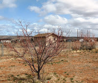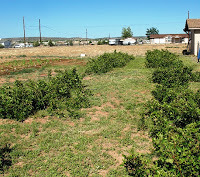 Weeding the blackberries in MarchThe faint of heart part comes in when our little babies die or get eaten alive by bugs. Like I mentioned in prior blogs, the weather took out tomato plants and rendered our peach and apricots fruitless, the bugs destroyed some leafy greens. We got a scare with the potatoes - again the weather. The night that happened, we realized that whatever the reported low will be for Paulden will actually be about seven degrees colder here. The tops of the potatoes were black. I took little manicure scissors and cut off all the black areas. We then mulched and covered all the plants with the blankets. They seem to be responding.