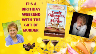 Last week, my sister and I had our first chocolate martini of the year. We have one twice a year, once in the spring for her birthday and again in the fall for my birthday. We've been doing this for a few years now. We always go to the Hasayampa Inn in Prescott, Arizona and sit in the saloon called the Peacock Room. This tradition is what led to the cozy mystery series I am writing with co-author Joyce Proell. Candy, Cigarettes, and Murder released in March. Book two, Reading, Writing, and Murder is set to release in September.